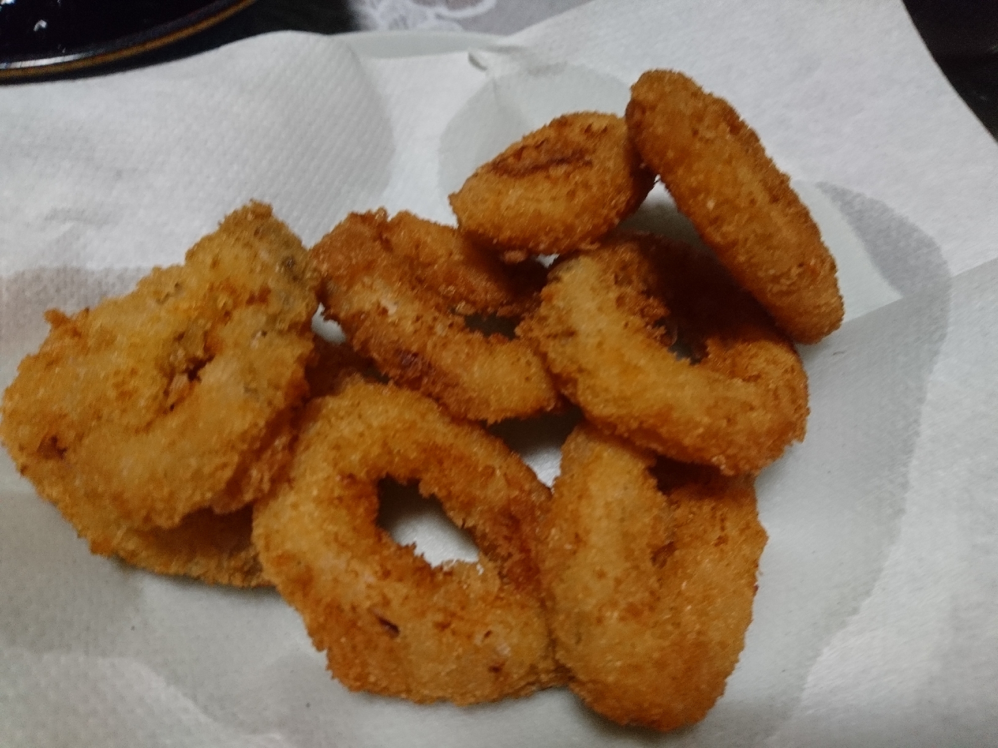 何も無いので玉葱揚げて 冷凍ミニイカフライ揚げて 飲むか 少し 名残りの猫雑記
